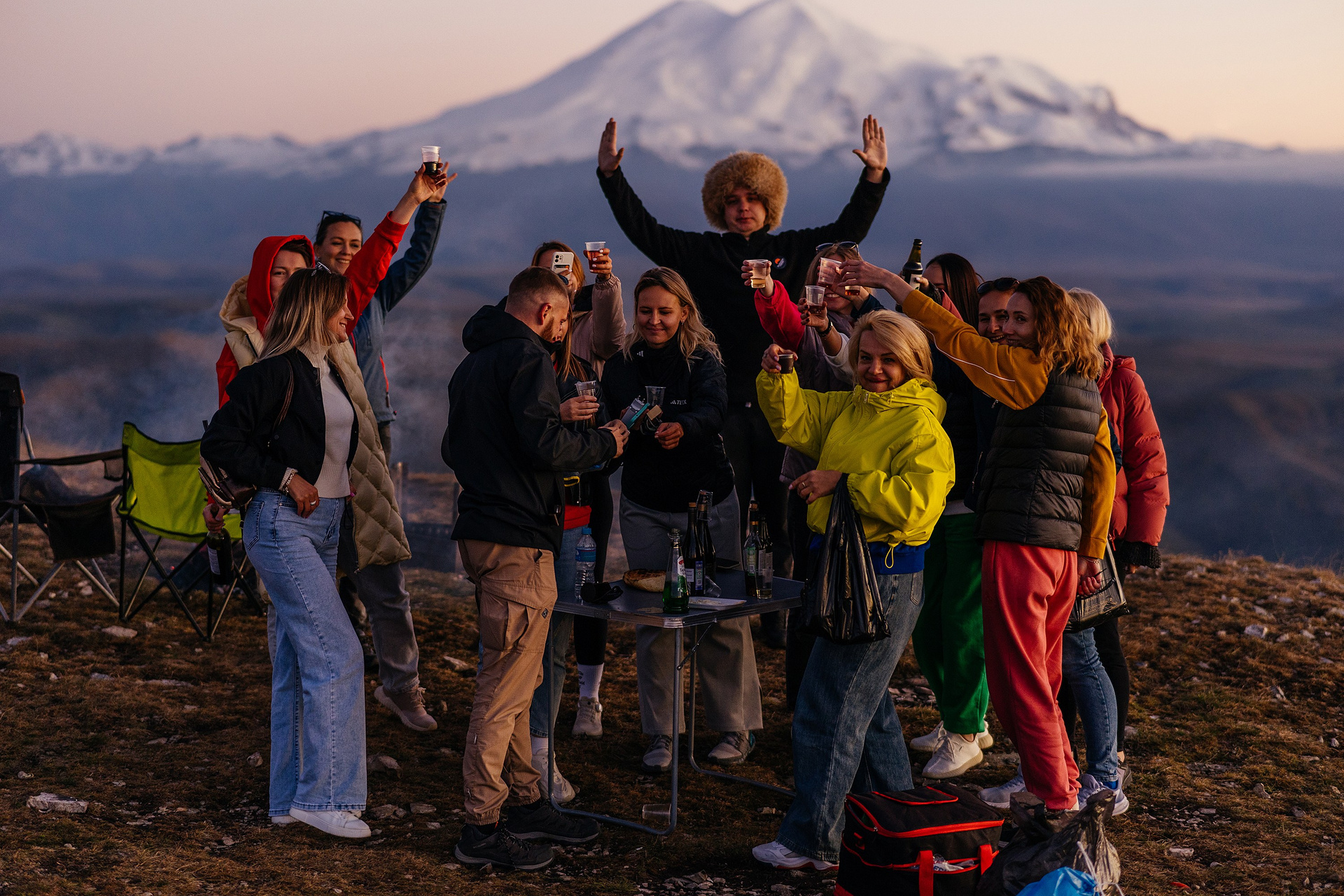 Самое яркое впечатление — это, конечно, вид на Эльбрус. С Бермамыта он виден как на ладони, во всей своей двуглавой мощи. Лучший свет — на рассвете. Когда первые лучи только касаются самой высокой вершины Европы, а внизу ещё лежат тени и туман — вот это магия, ради которой стоит выезжать затемно. В такое утро я превращаюсь в молчаливую тень с камерой, потому что знаю: сейчас главное — не мешать, а просто ловить эту красоту и ваши лица, на которых она отражается.
